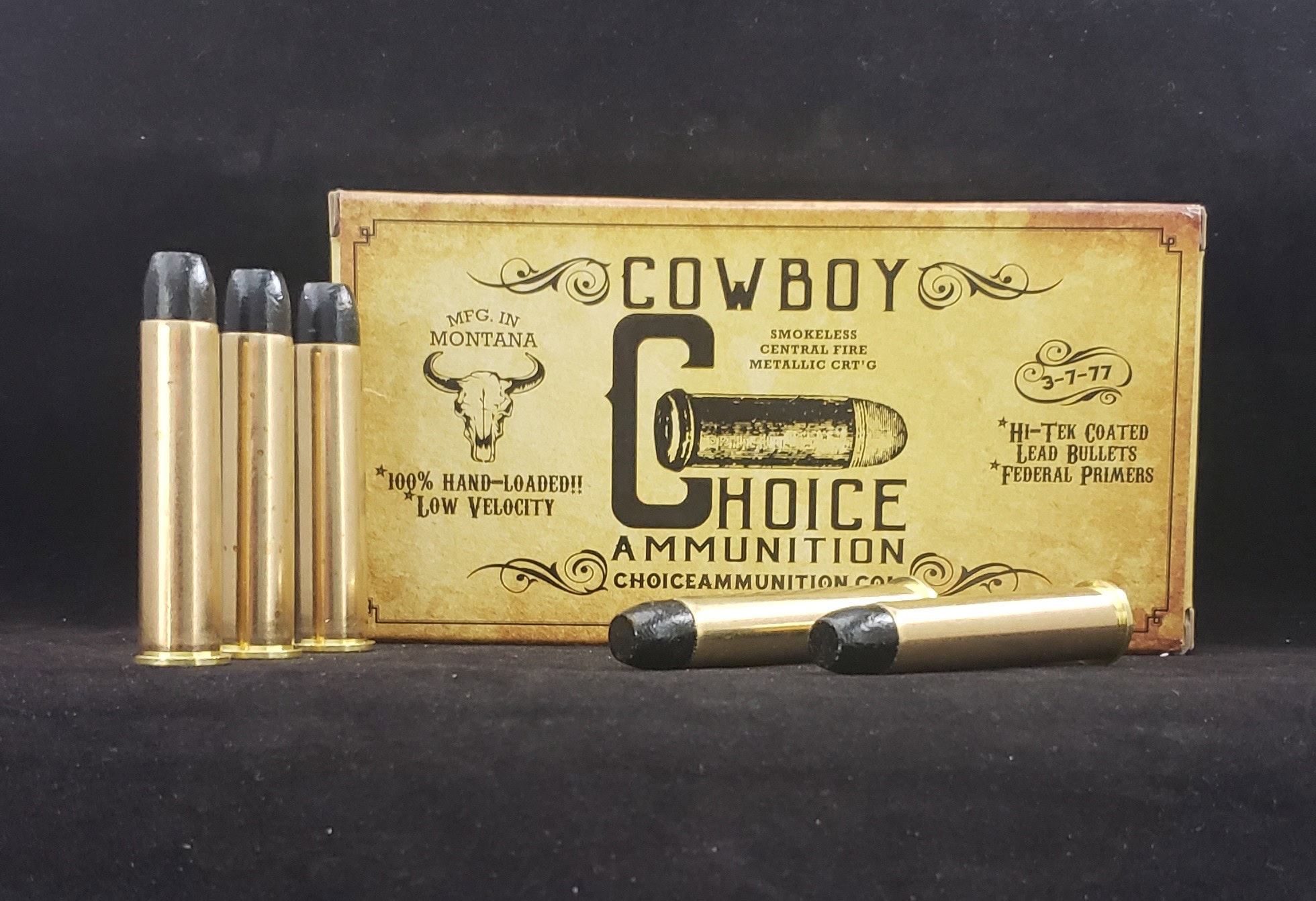Our 100% Hand-Loaded Cowboy Action 405 grain Hi-Tek Coated Lead Cast rounds are loaded with extremely tight tolerances, producing highly accurate, consistent and reliable performance with each and every shot! Our proprietary load formulas and loading process create the finest round of ammunition available on the commercial market today we feel. If you don’t load your own ammunition- let us do it for you!