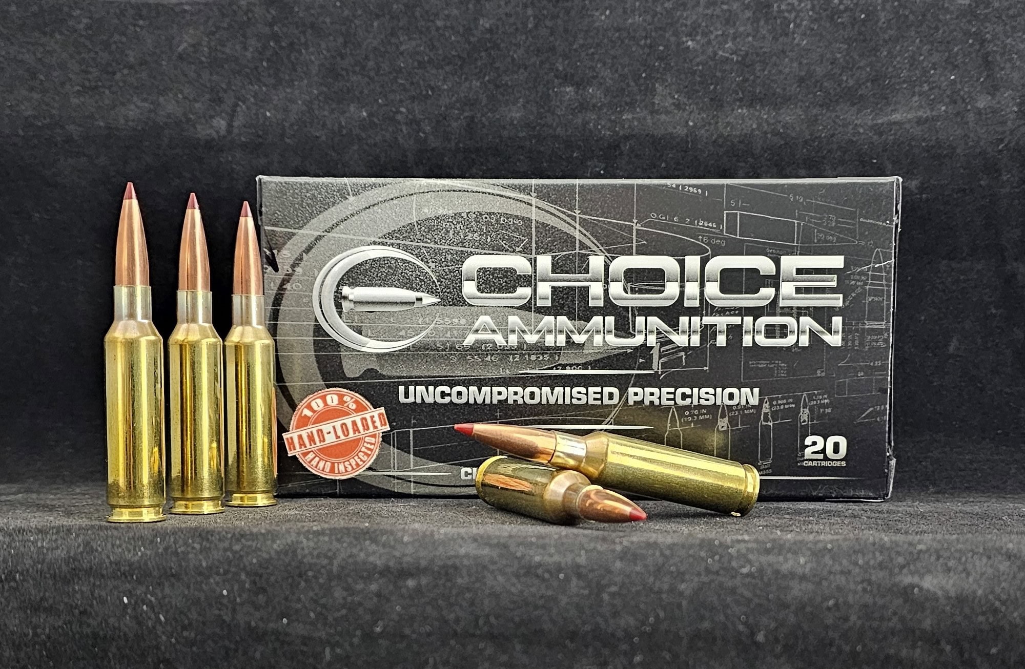 Choice Ammunition has taken our 100% hand-loading techniques and produce an extremely accurate, highly dependable round for the 6.5 Creedmoor in this load. Our loading tolerances are only matched by passionate hand-loaders in their own loading rooms. Consistent seating depths, powder charges and proprietary formulas of Choice Ammunition, make this 140 Grain Hornady ELD-M round the best you can buy on the commercial market today.
